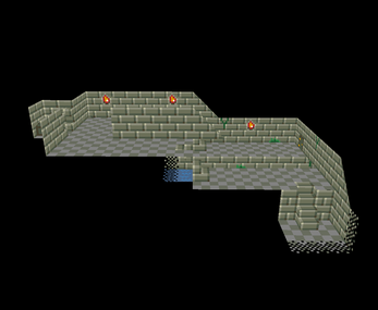 I picture this as being just one section of a much larger dungeon. You would enter via the stairs, go all the way around, and exit via the door - opening the hidden treasure chest along the way, of course!