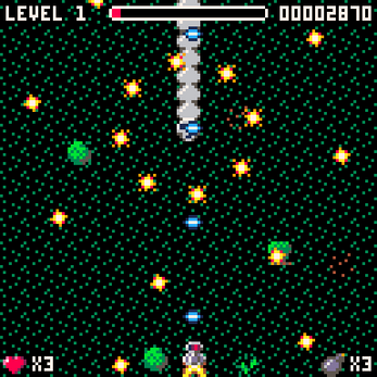 My Toy Box Jam 2023 entry. I wanted to try something different (and play to my strengths) and make a shmup. I overestimated how much time and energy I would have to work on it over the holiday period, so instead of the five levels I had planned, there's only one. Sorry about that.